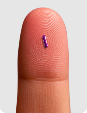 O RelationChip é um dispositivo do tamanho de um grão de arroz, implantado de forma simples no antebraço. Biocompatível e seguro para implante. Alimentado por microenergia cinética (movimento de corpo).